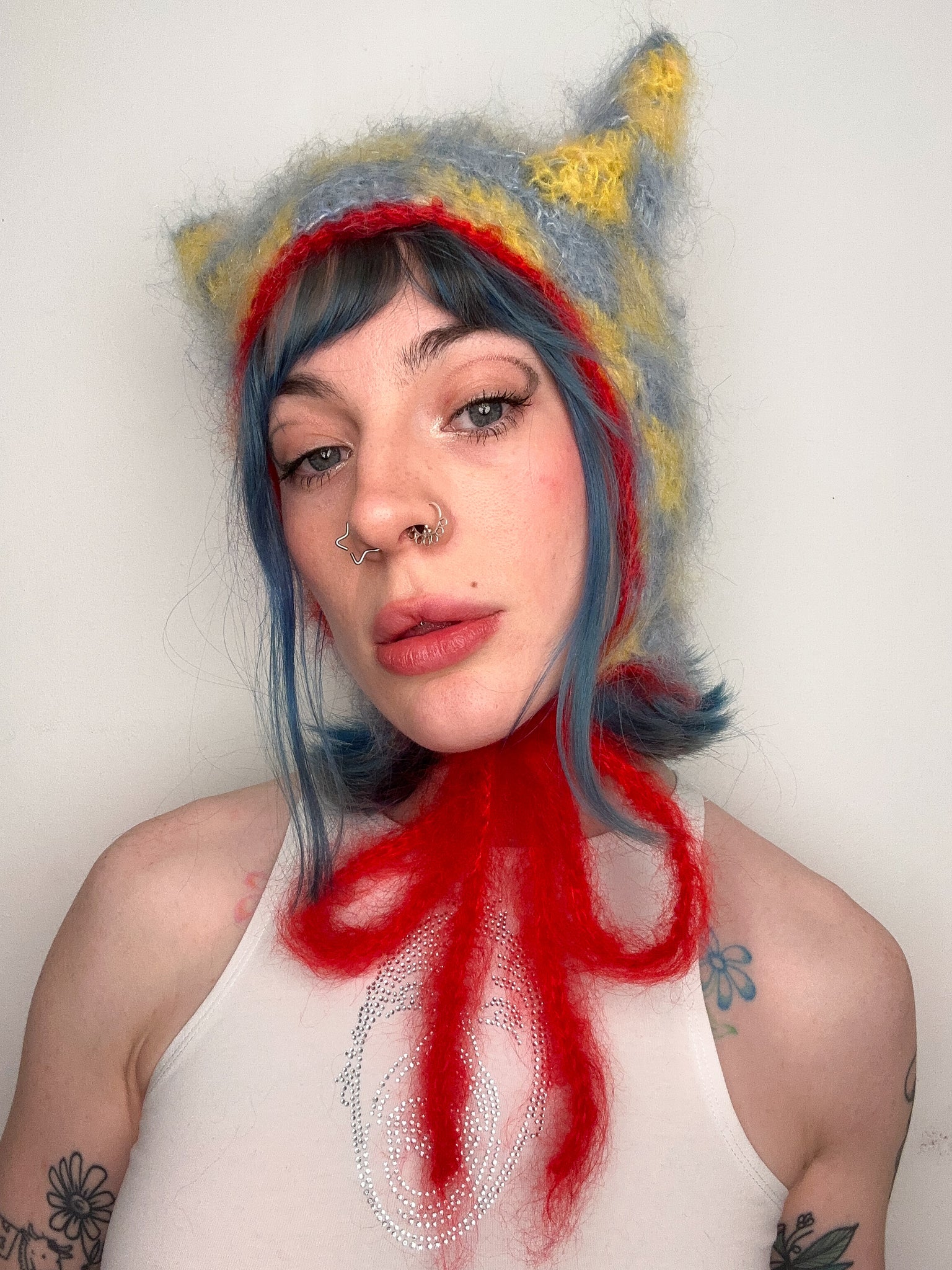 Back for this drop, the fluffy checkered kitty bonnet 😺